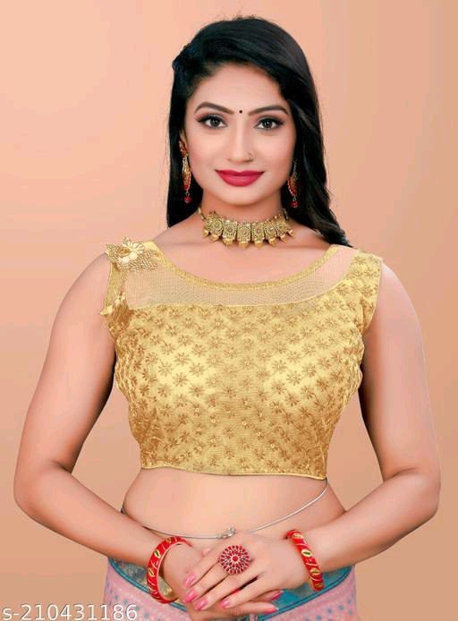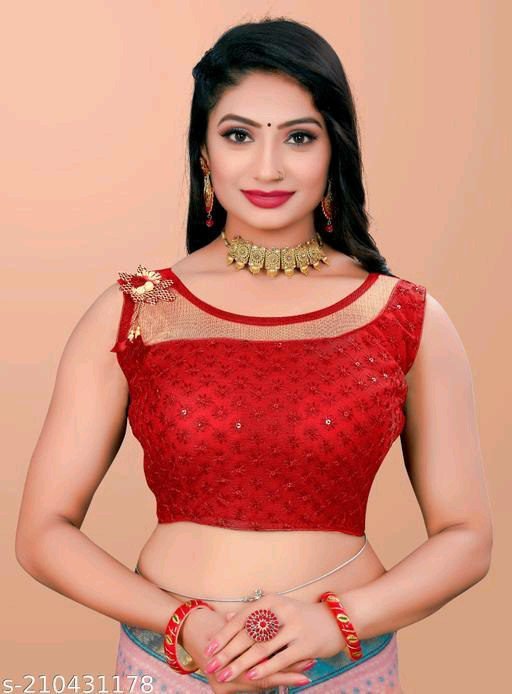 Sleeveless blouses can be adorned with various embellishments like embroidery, sequins, beads, or stones to add a touch of glamour. Additionally, you can accessorize the blouse with statement necklaces, earrings, or bangles to enhance the overall look.