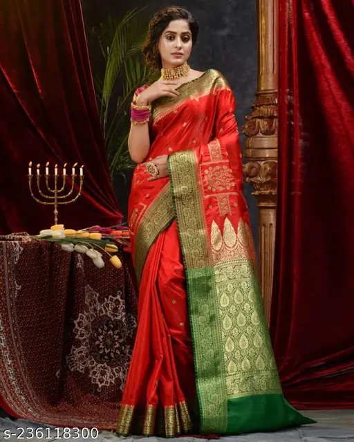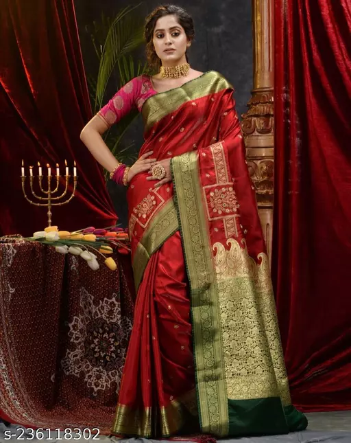 This Beautiful Red Saree Symbolizing love and auspiciousness, red Banarasi silk sarees are a classic choice for weddings and other festive occasions.