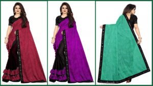 For those seeking a stylish and sleeveless option to enhance the simplicity of cotton sarees, consider the frill blouse design. Tailored with a deep neckline and cut sleeves, this design incorporates frill detailing for added flair. Choose between heavy or small frill designs, ensuring a consistent color scheme with matching piping. Complete the look with a pendant at the back for an elegant touch. This blouse eliminates the need for additional neck accessories, making it a perfect choice for weddings or special occasions.