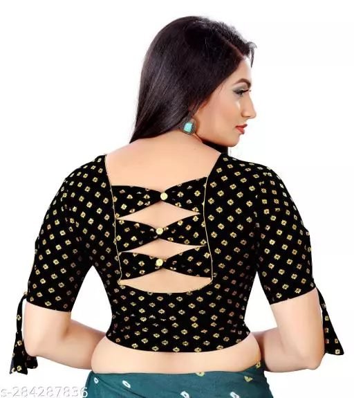 This Very Beautiful lycra stretchable, Designer tie back foil printed blouse with cold shoulder sleeves. Cold Shoulder Blouse: This blouse design has cut-outs at the shoulders, exposing a small section of skin.