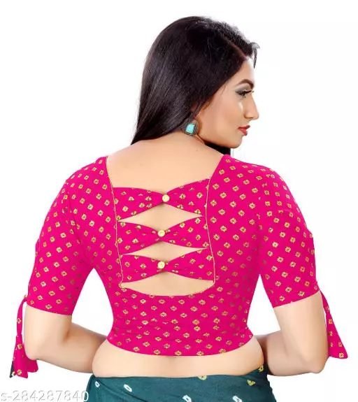 This Very Beautiful lycra stretchable, Designer tie back foil printed blouse with cold shoulder sleeves. Cold Shoulder Blouse: This blouse design has cut-outs at the shoulders, exposing a small section of skin.