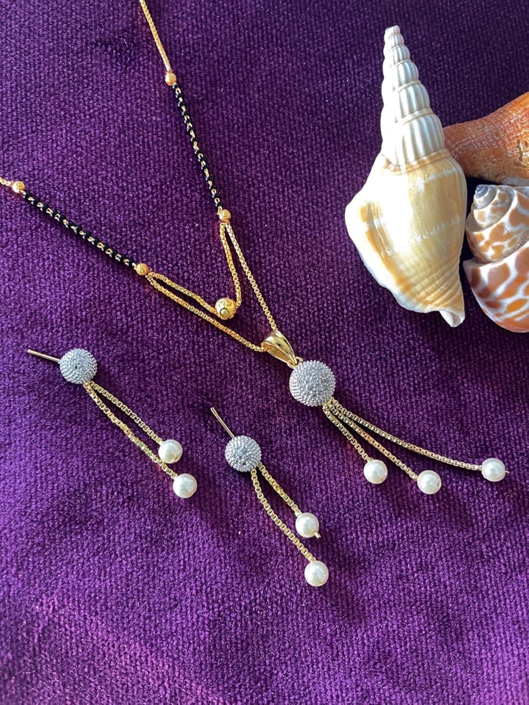 Gold Plated Necklace ball shape Pendant diamond mangalsutra with moti latkan Layered Pattern Gold Mangalsutra Latest Designs For Women .