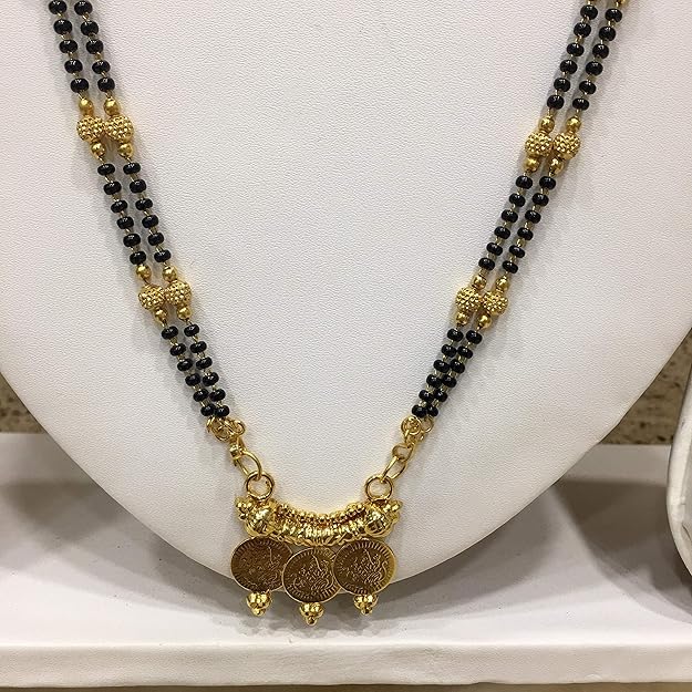 Gold Plated Beads Double Line Layer Long 36-inch Length Chain Vati Tanmaniya Pendant Mangalsutra for Women . Stylish and Trendy designer Mangalsutra for festival Perfect for all occassions after marriage .