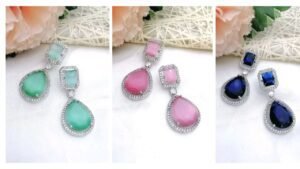 This is very beautiful bridal jewelry set. American Diamond Stone has been used to make this beautiful jewelry set. It has a quality Imitation AD Stone with 18K gold plating which gives it an edge over other earrings. This is a one of a kind design which will go with all types of Dresses. In this bridal jewelry set, you will get necklace, earring, maang tikka, hath panja and nose ring. You can buy it by clicking on the link given below.