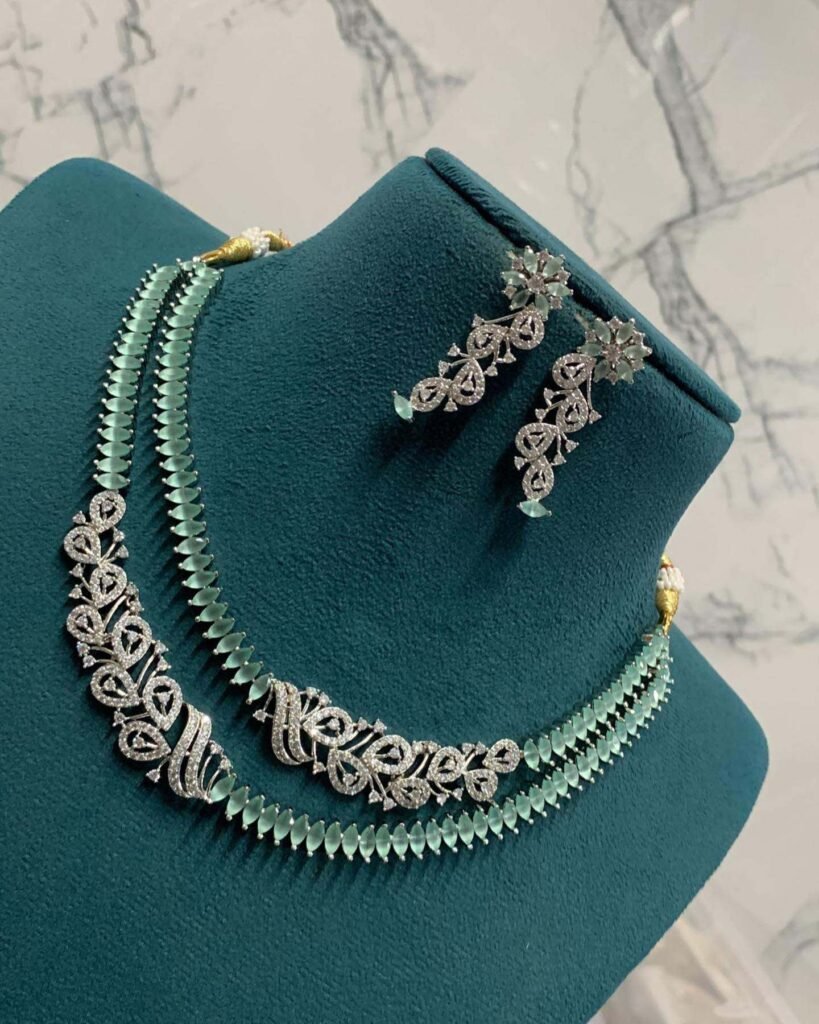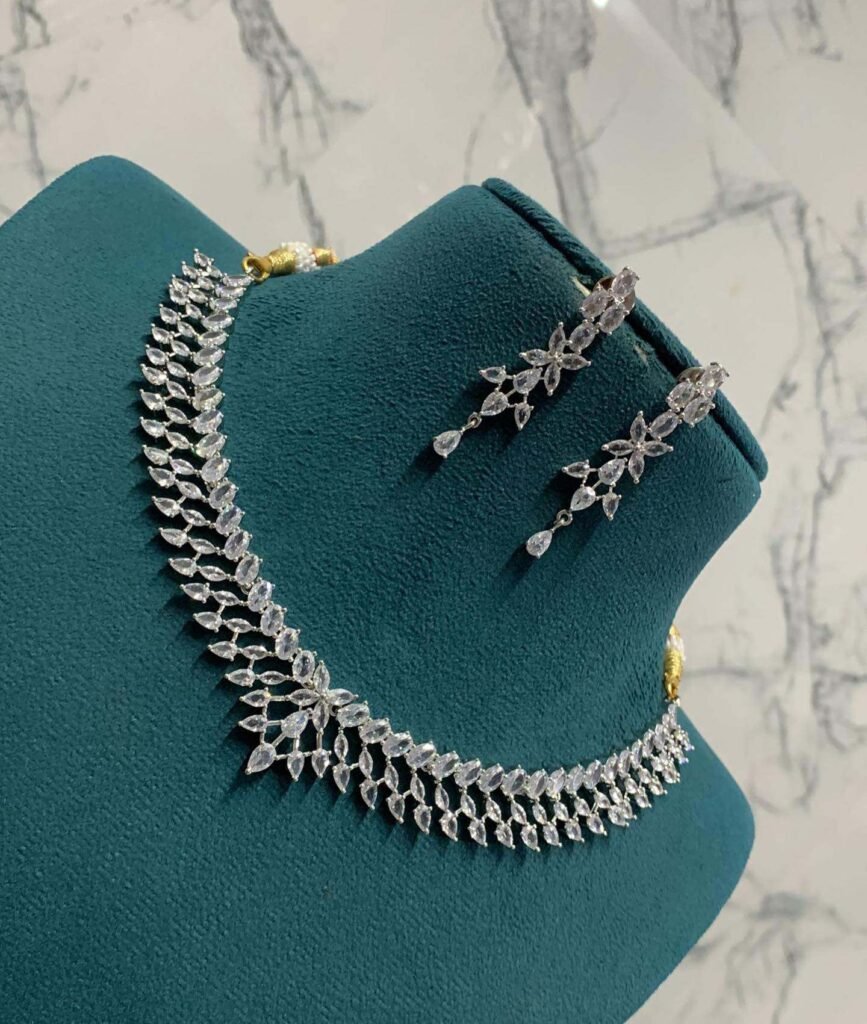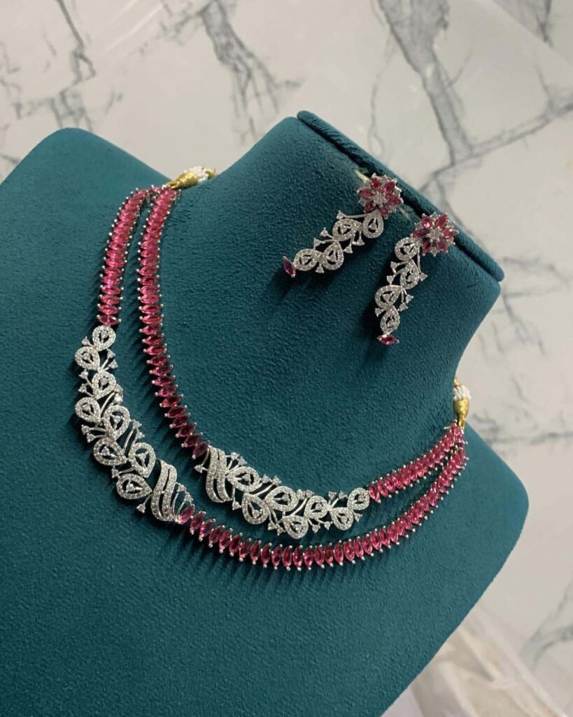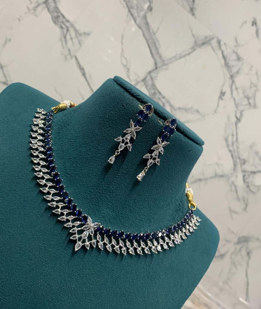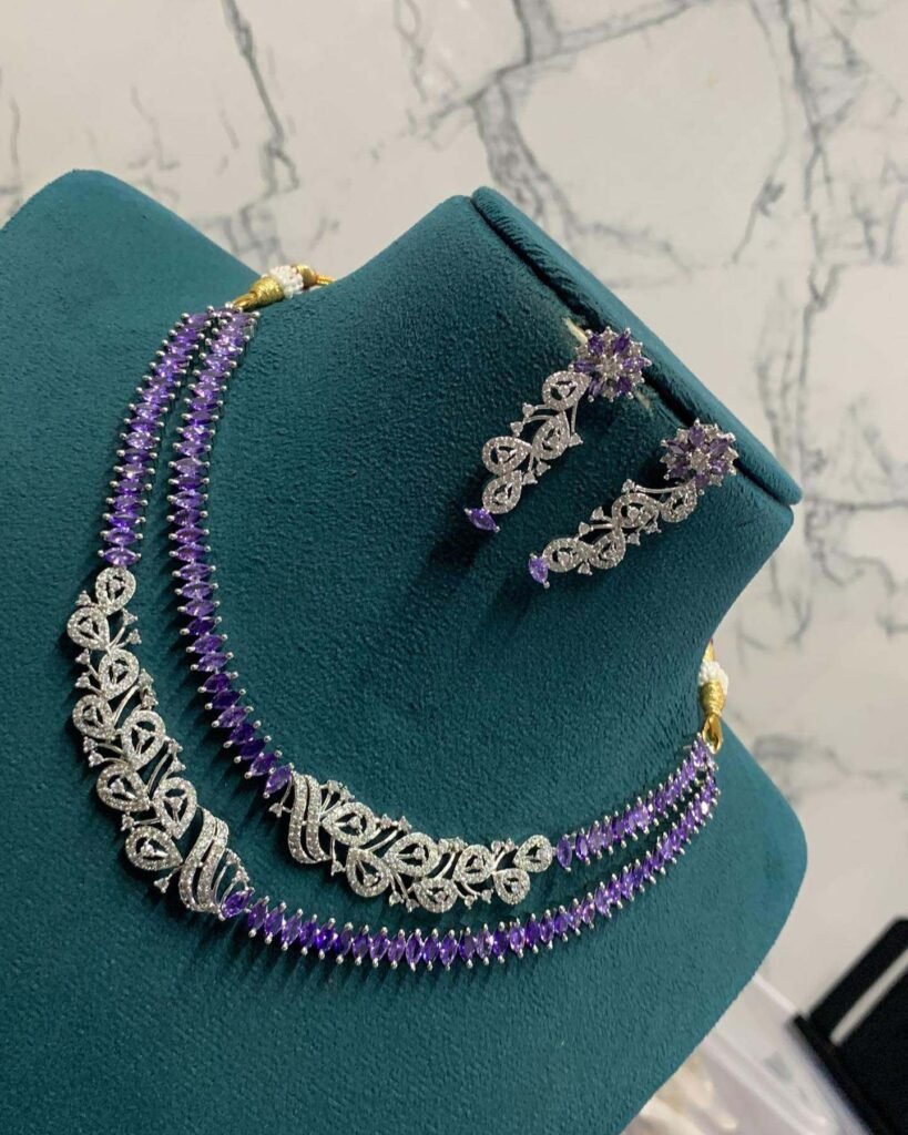This type of American diamond jewelry is very much in trend. , You can buy such stylish jewelry sets online or offline from anywhere. You will get it easily in the market for 1000 to 3000 rupees.