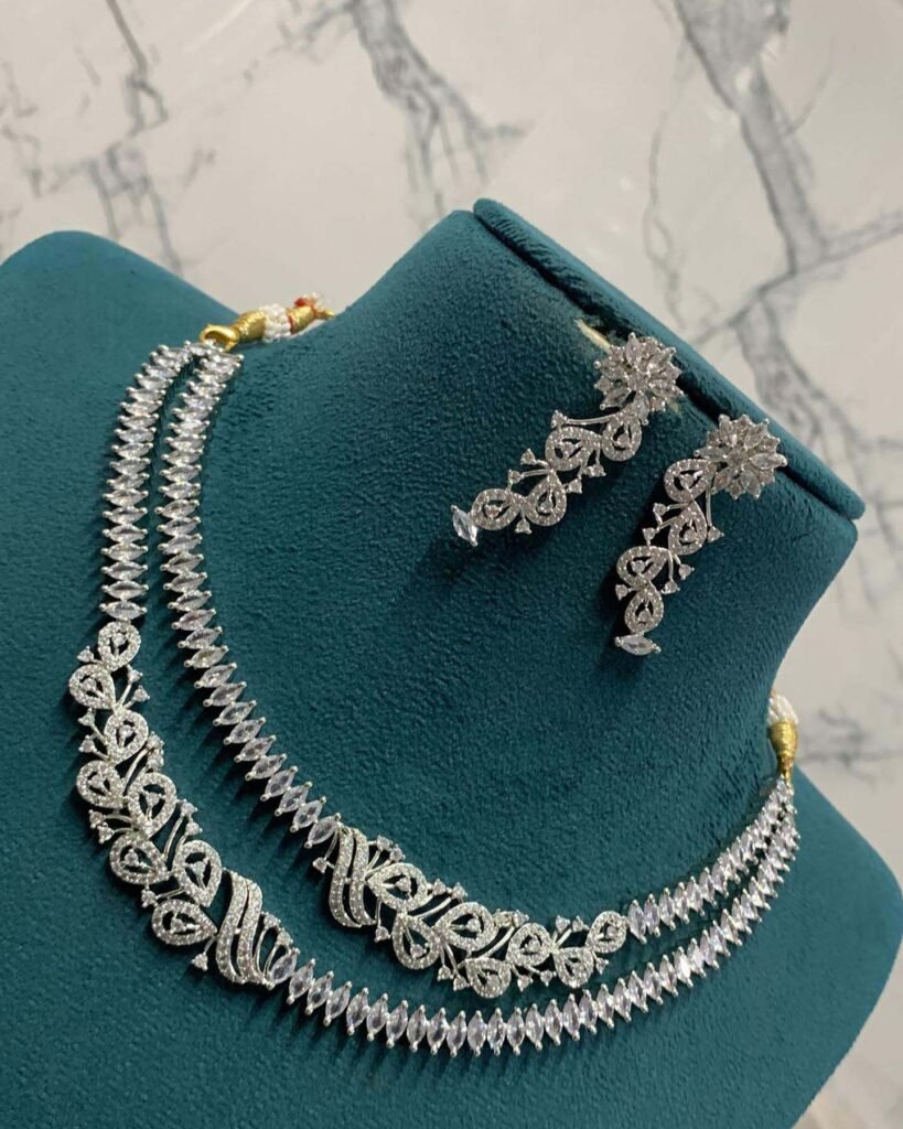 Girls and women have a special collection of jewelry . Jewelry has a special role in the Solah Shringar of women. Be it the old era or today’s world, the trend of jewelry is changing. Be it wedding ceremony, party, festival or any normal occasion, all women love to wear jewellery. Today in this article, we have come up with some of the best American diamond jewelry set designs. Which you can wear in any party or function.