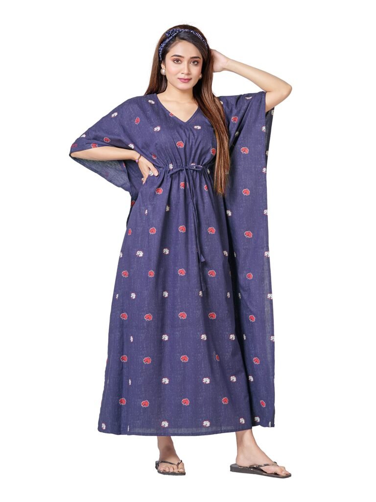 MIDAUTUMN RAINS Cotton Handcrafted Printed Kaftan Summer Dress Kaftan Nighty for Women