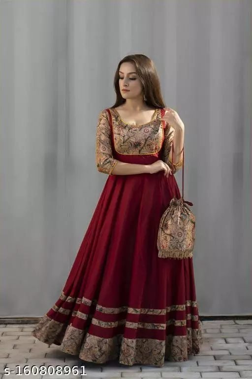 Vine colored cotton Gown For Women