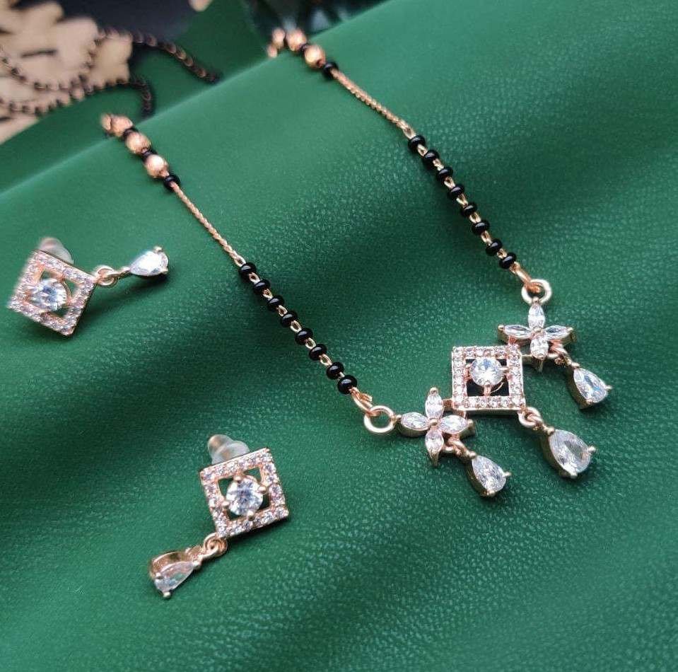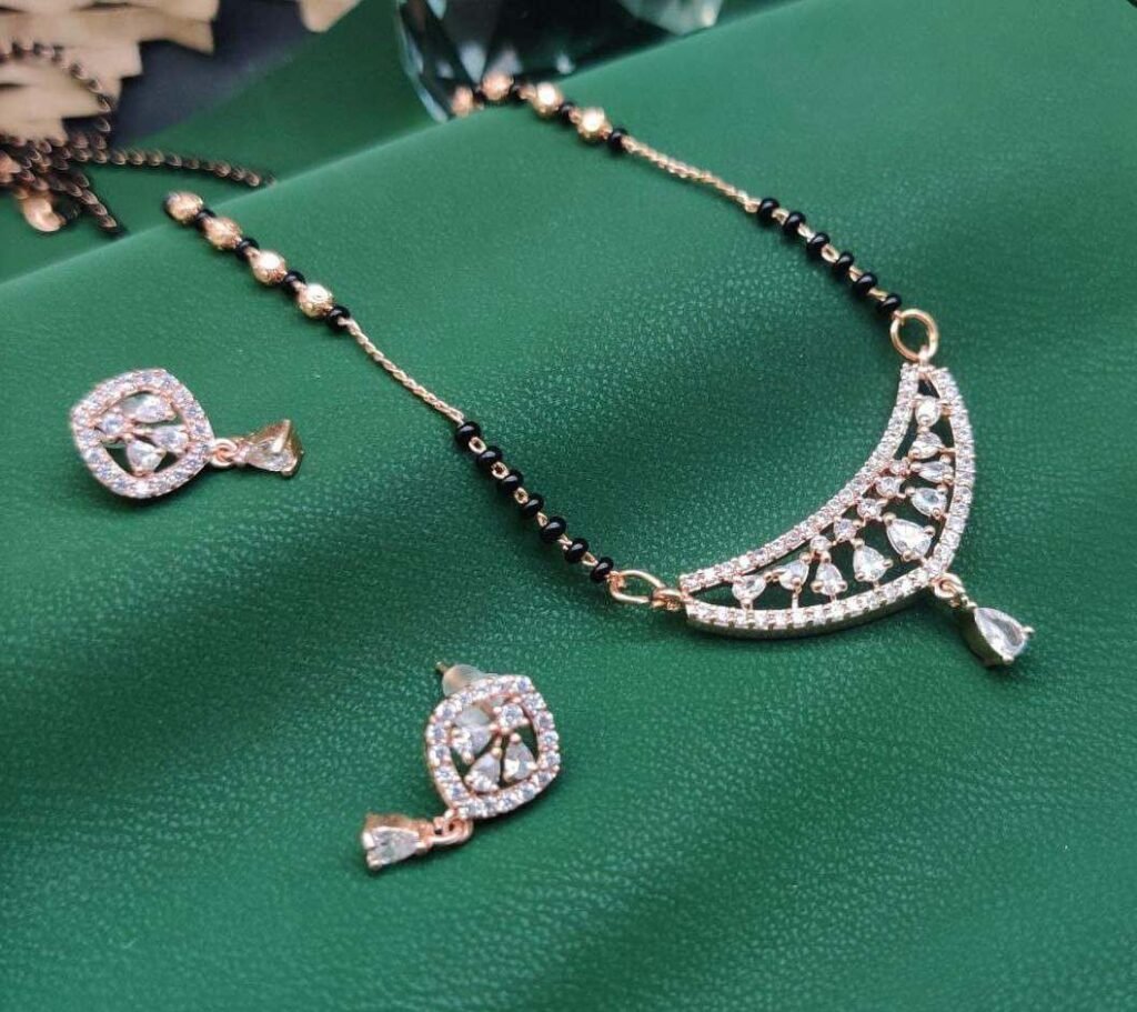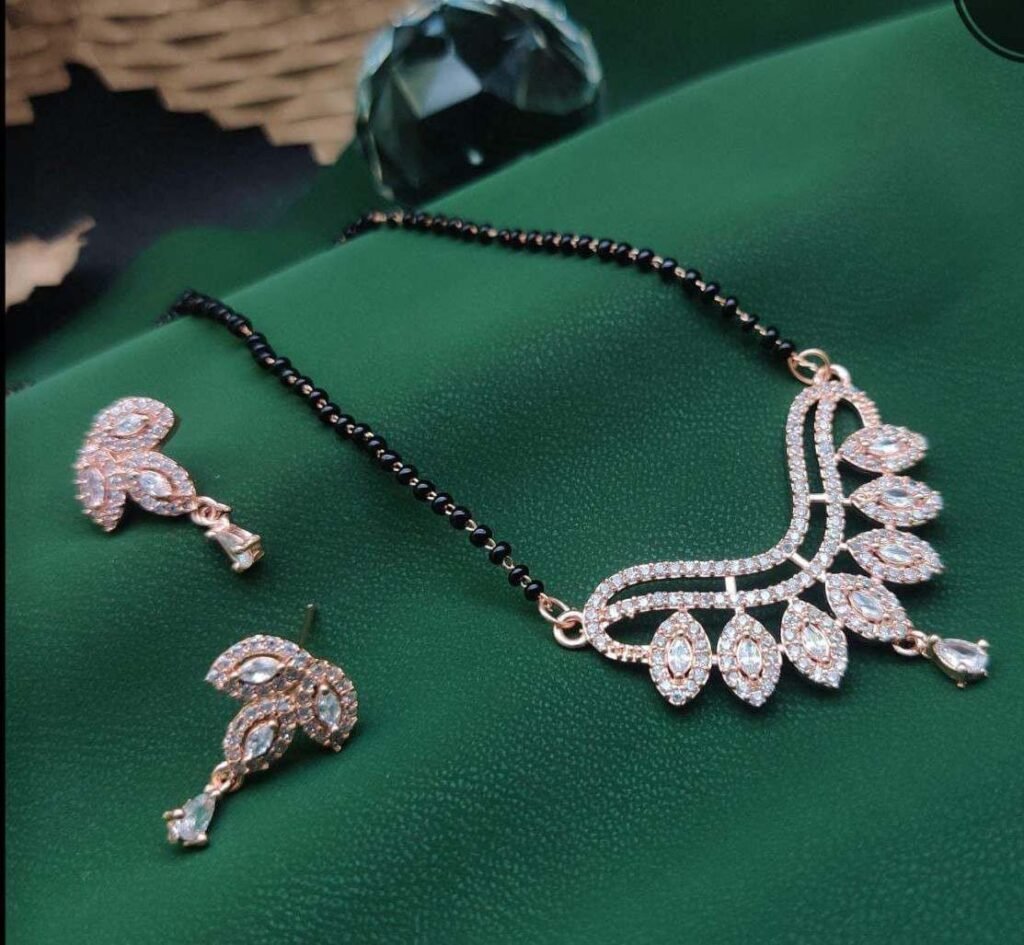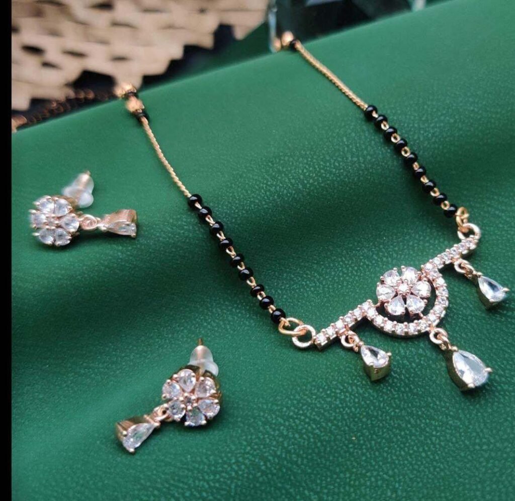 Magalsutra is considered a symbol of marriage and good luck. You will find many designs of Mangalsutra in the market. If you also like to have beautiful designs of Mangalsutra in your jewelry collection, then today we have brought very cute and stylish American diamond pendant designs of Mangalsutra for you.