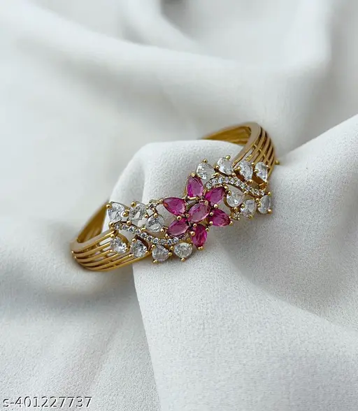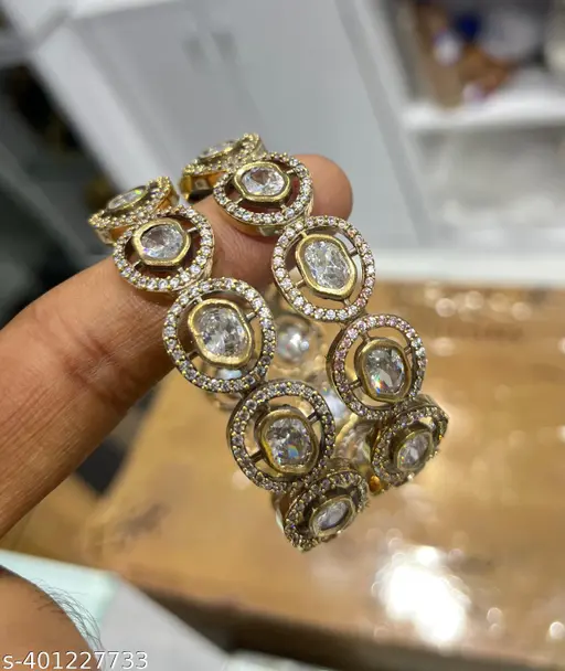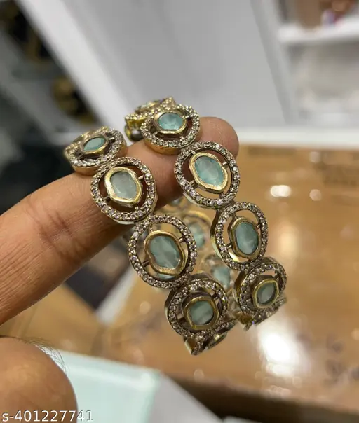 Are you Lokking for a unique and stylish bangles set for girls? Look no further! We have just the thing for you. Introducing the stunning collection of brass bangles with a gold-plated finish, adorned with beautiful stones made of cubic zirconia. These bangles are available exclusively on Meesho.