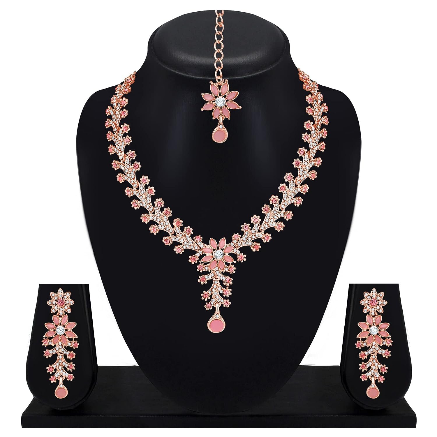 Atasi International Viva Sparkle Silver Plated Alloy Choker Necklace Set with Earrings and Maang Tikka For Women