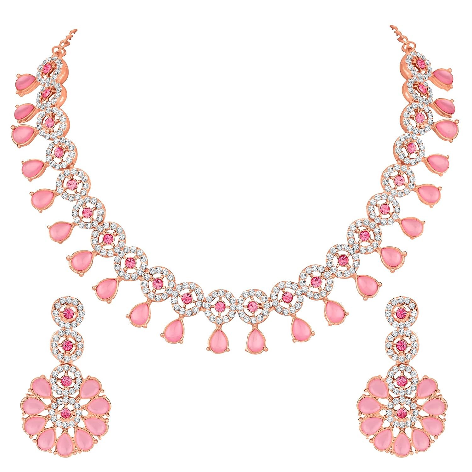Atasi International Kundan and American Diamond Necklace Jewellery Set with Earrings for Women