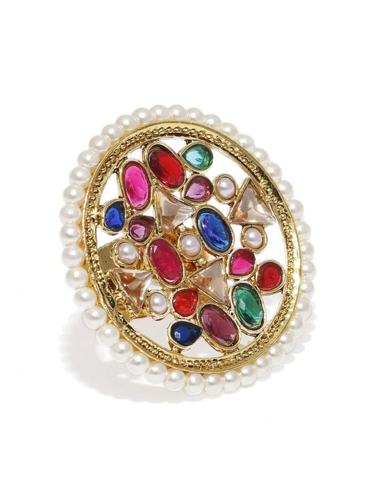 Antique Gold Tone Magnificent Multicolor Stones Adjustable Finger Ring For Women