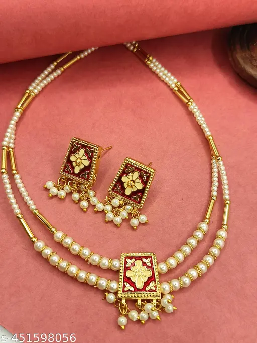 Traditional necklace sets are perfect for weddings, festivals, and other special occasions. These sets usually include a heavy necklace and matching earrings. They are often made with gold or gold-plated materials and feature intricate designs. Some traditional sets also include a maang tikka, which is worn on the forehead. Popular designs include Kundan, Polki, and temple jewelry.