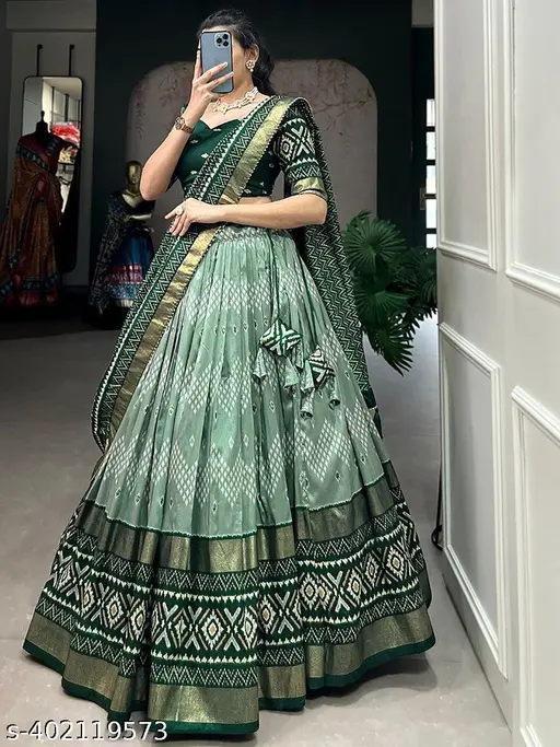 Are you looking for a beautiful and affordable lehenga choli for your little girl? Look no further! We are excited to present the Dot and Ikkat Print with Foil Work Tussar Silk Lehenga Choli, available in four vibrant colors, all under 1000 rupees, exclusively on Meesho.
