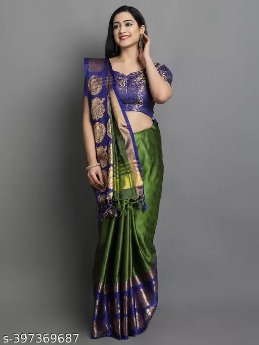 Embrace nature’s beauty with a graceful green silk saree. Green represents freshness, fertility, and prosperity, making it a popular choice for auspicious occasions.